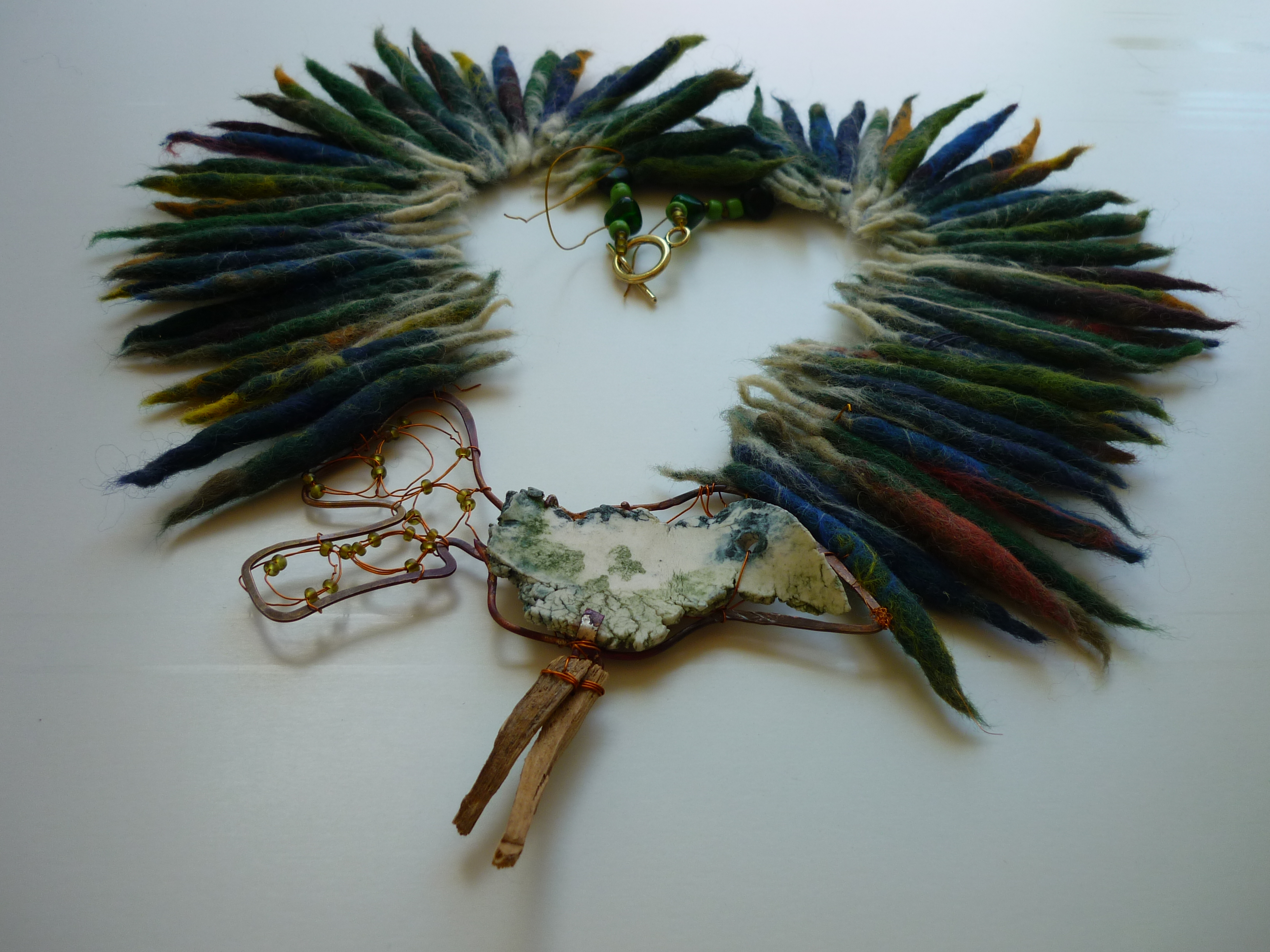 ketting vogel: porcelein koper vilt kralen